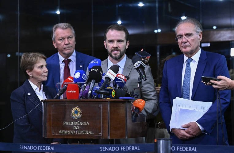 Ministro da Fazenda, Dario Durigan, fala após reunião com o presidente do Senado, Davi Alcolumbre. Também participaram os senadores Tereza Cristina (PP-MS) e Renan Calheiros (MDB-AL) e o deputado Afonso Hamm (PP-RS). Foto: Agência Senado) Ministro da Fazenda, Dario Durigan, fala após reunião com o presidente do Senado, Davi Alcolumbre. Também participaram os senadores Tereza …