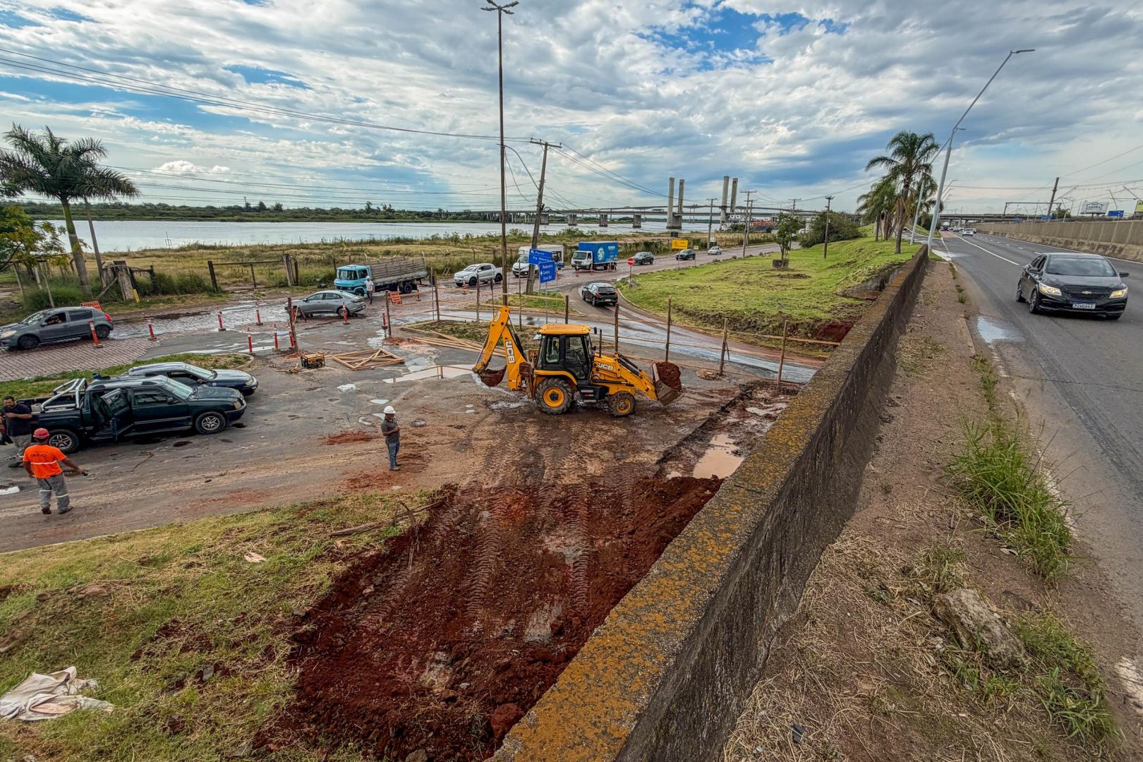 Trabalhos na estrutura altera o trânsito de veículos da região. (Foto: Vinicius Morelli/PMPA)