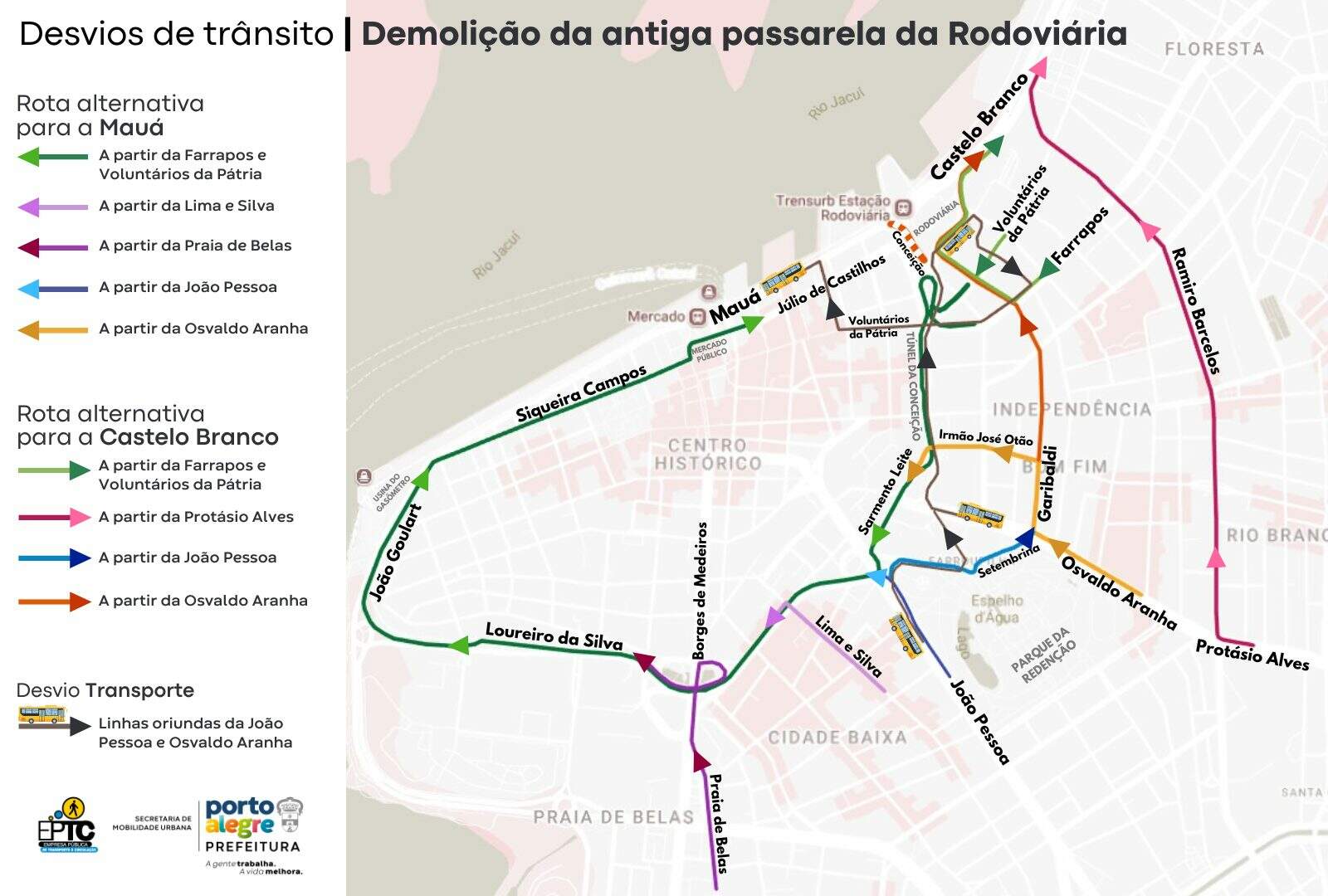 Agentes da Empresa Pública de Transporte e Circulação (EPTC) estarão nas ruas e avenidas para orientar o tráfego e minimizar os impactos à circulação, sobretudo no Centro Histórico, bairro Cidade Baixa orla do Guaíba. Confira, a seguir, as informações divulgadas no site prefeitura.poa.br/etpc.
